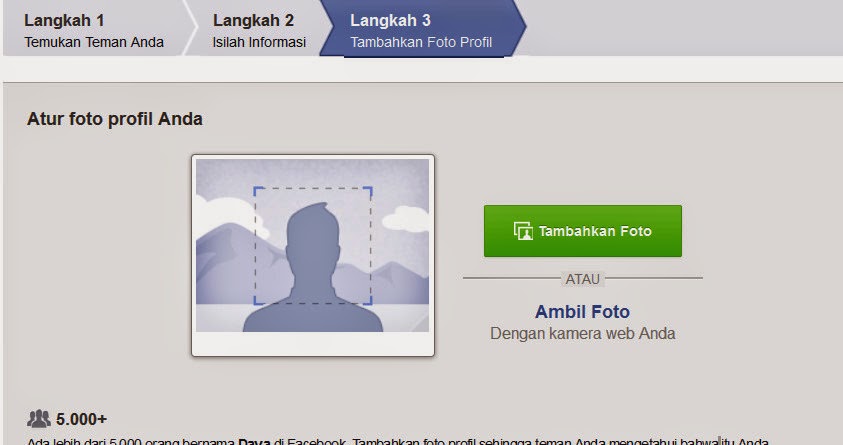 - Jika terjadi kesalahan atau nama yang anda gunakan telah di pakai oleh orang lain maka kolom akan berwarna merah dan jika tidak terjadi kesalahan langsung saja klik mendaftar.Setelah anda klik mendaftar maka akan menjumpai tampilan atau 3 langkah awal untuk melengkapi fitur dan profil di akun facebook anda dan ikutilah beberapa langkah untuk melengkapi pendaftaran akun facebook anda.